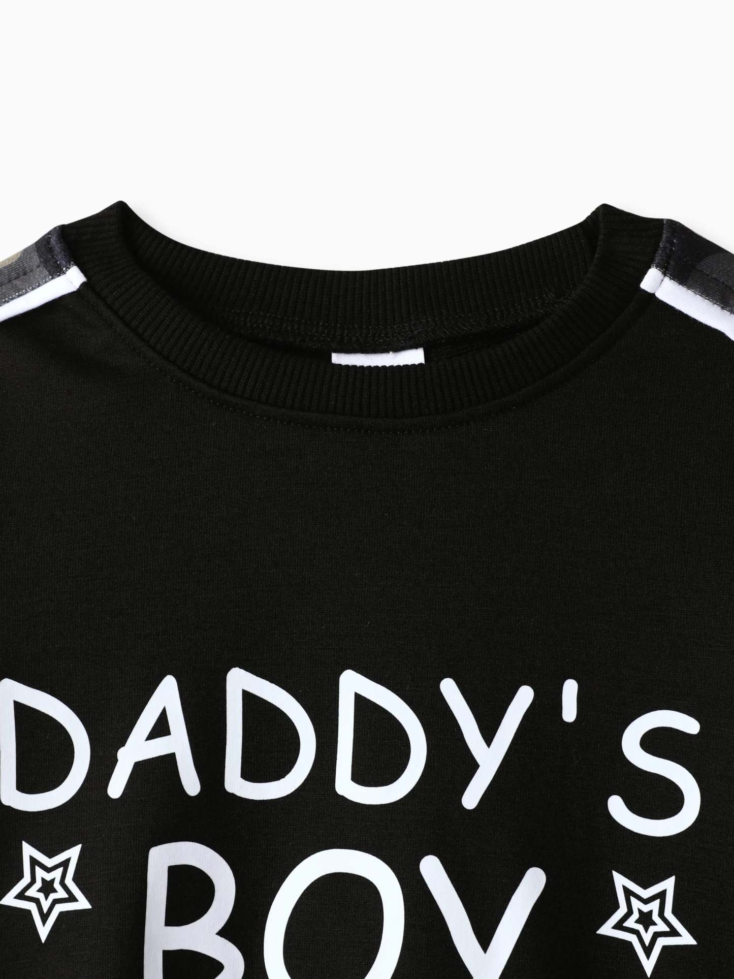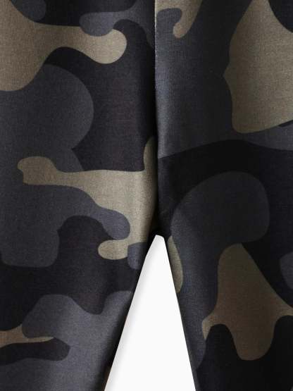 Modischer und lässiger Tarnstoff mit personalisiertem Text- und Slogan-Druck, kombiniert mit kontrastierenden Farben, perfekt für den täglichen Ausgang.