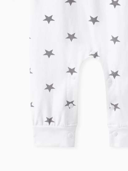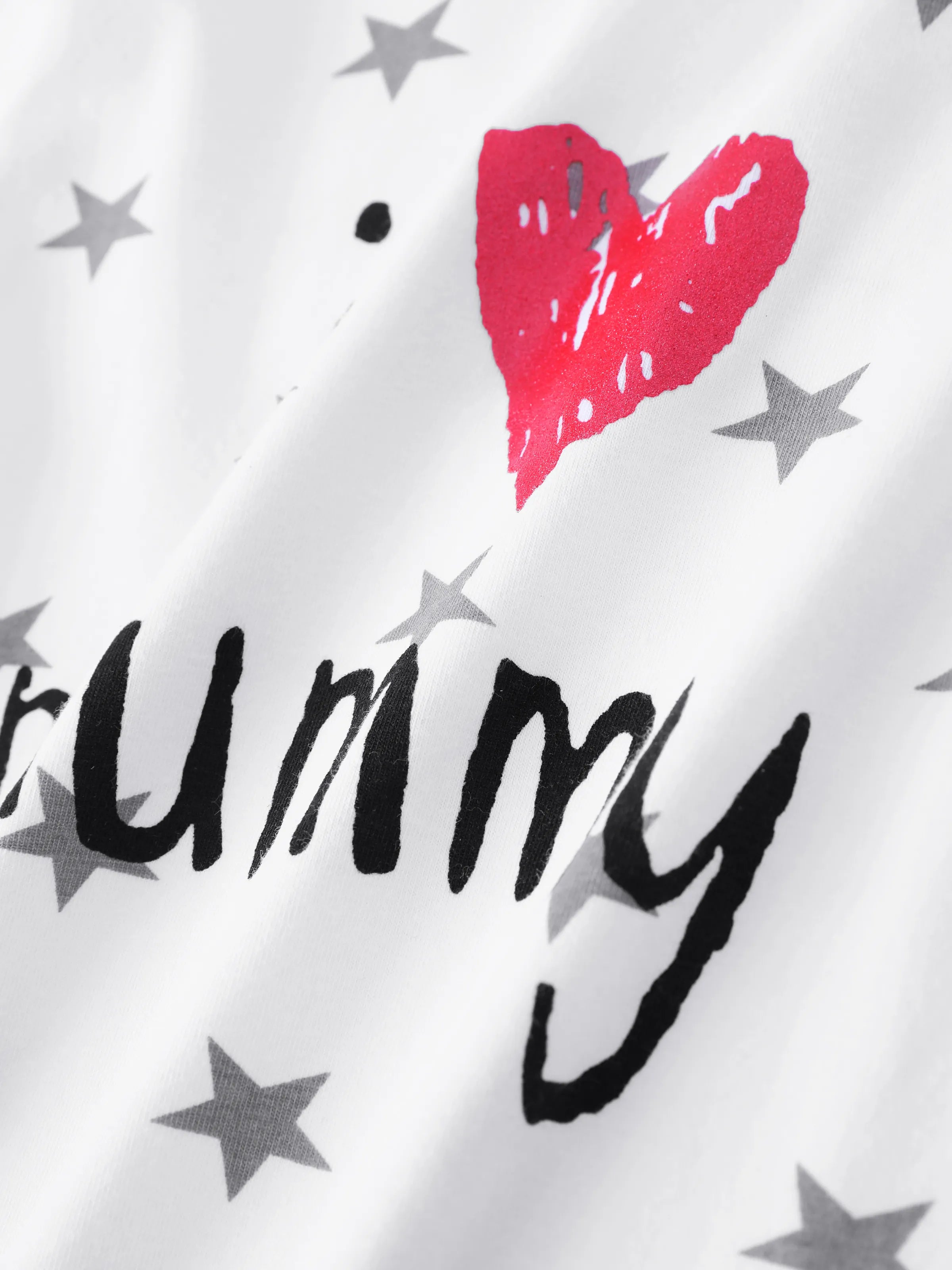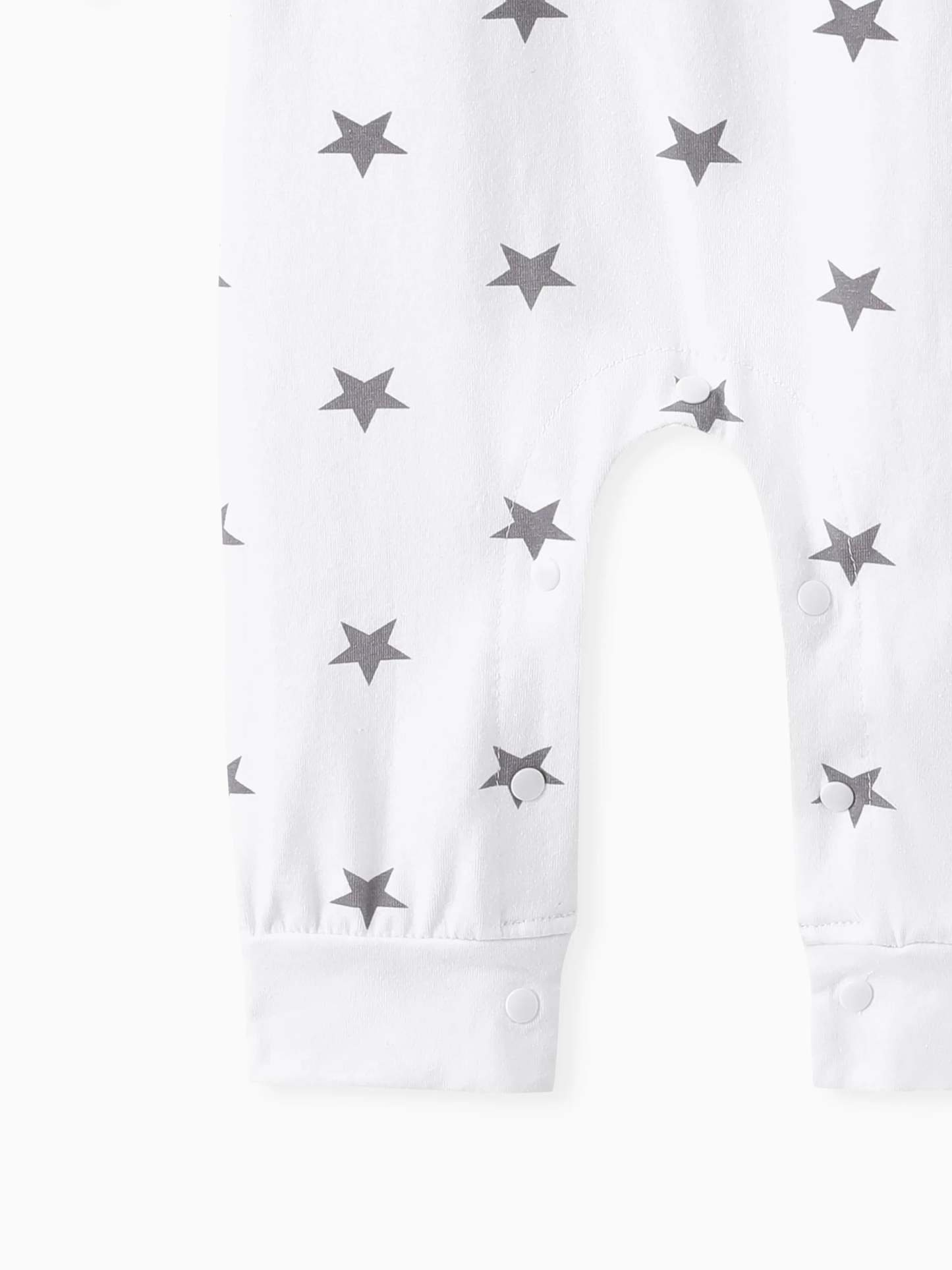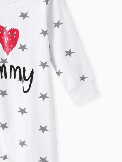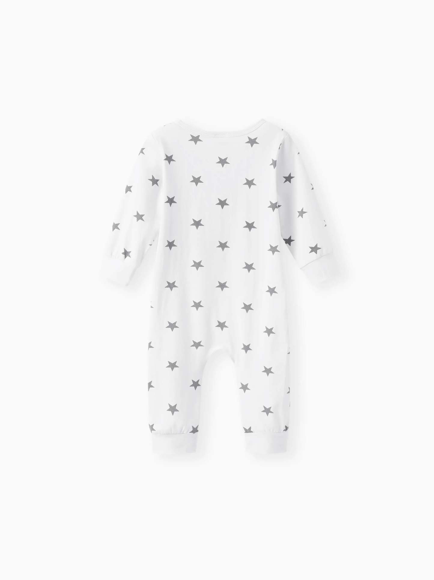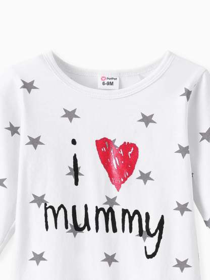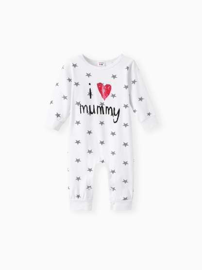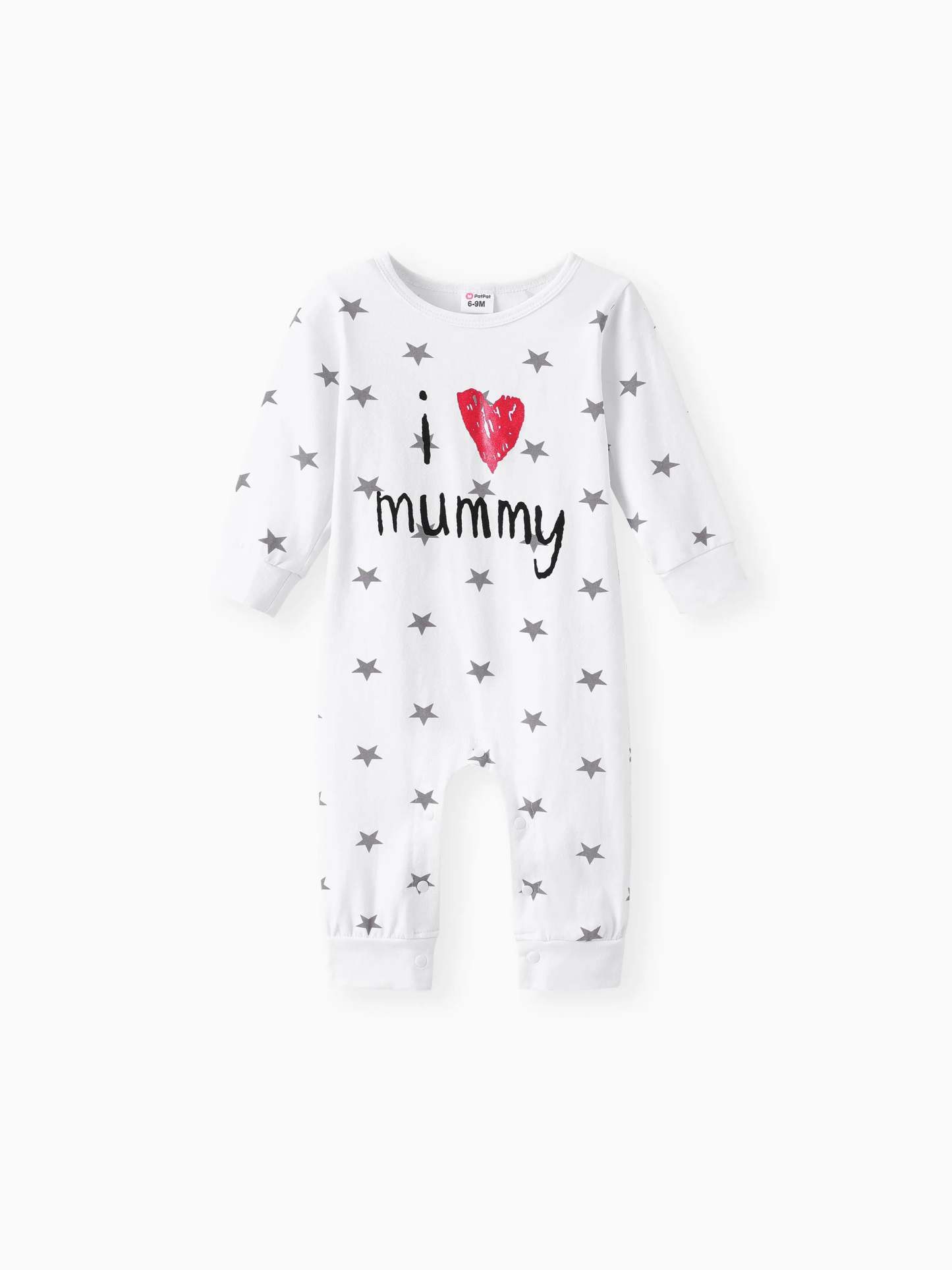 Muttertag Baby Junge/Mädchen 95 % Baumwolle Langärmliger Liebesherz-Buchstabendruck Sterne/gestreifter Overall weiß