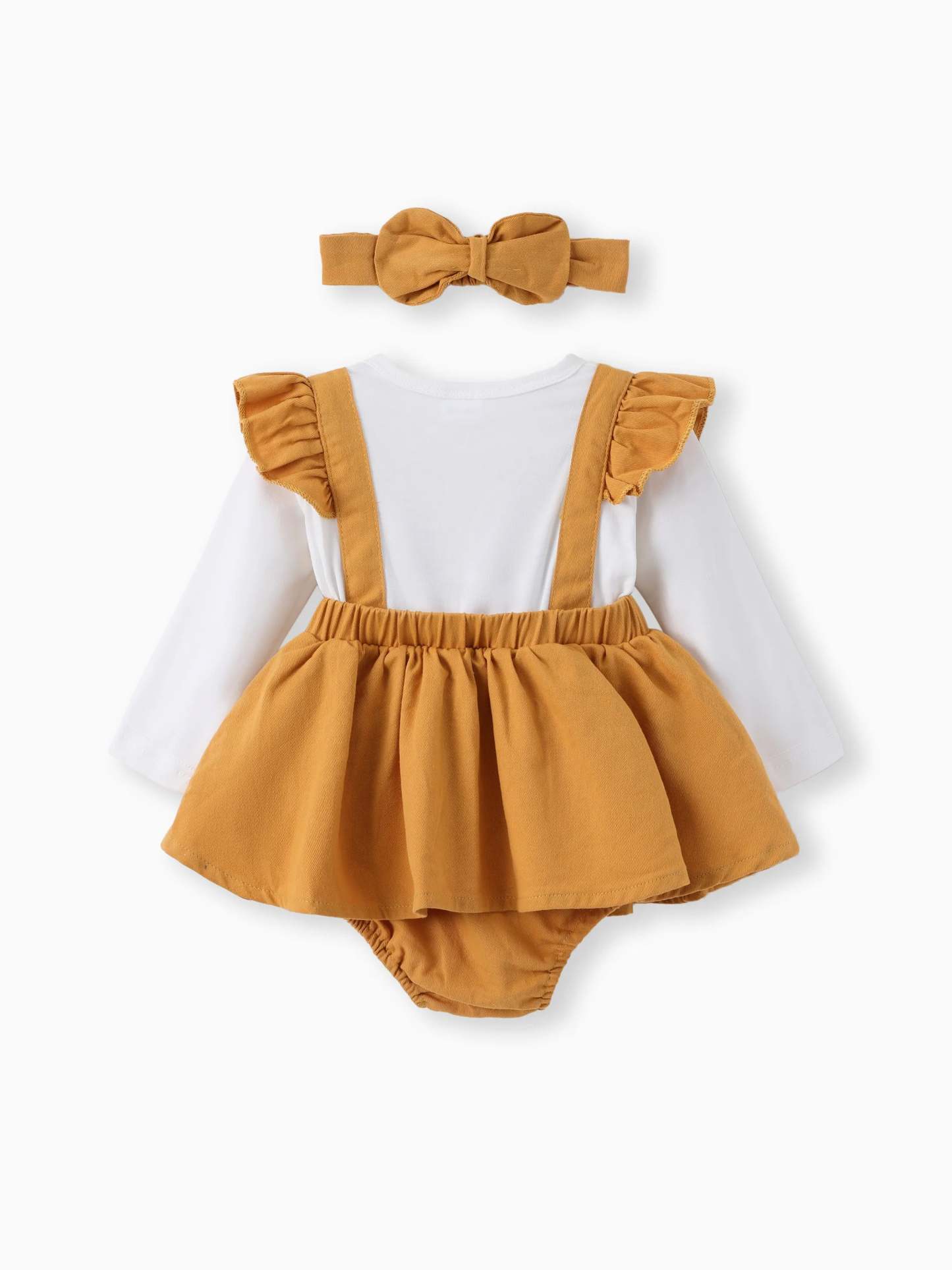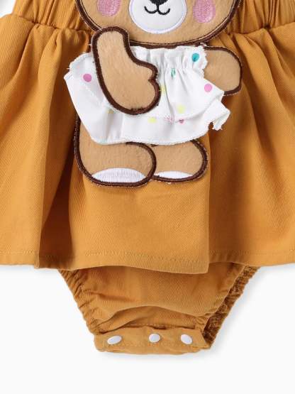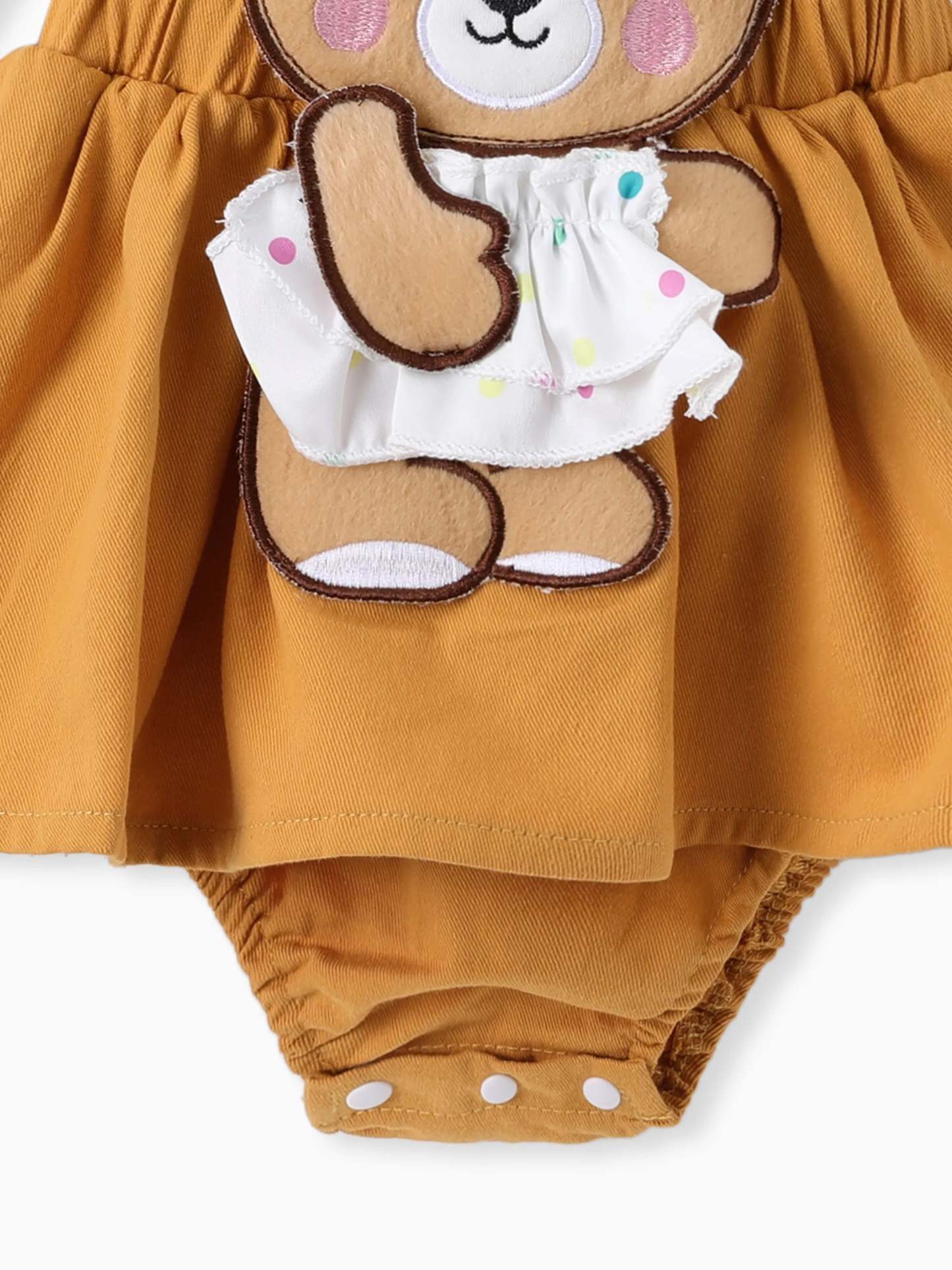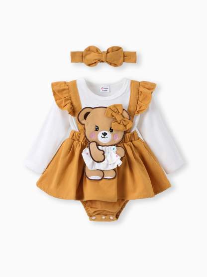 Baby Mädchen Kleidung Bär Stil Bestickter Strampler mit Stirnband Ingwer
