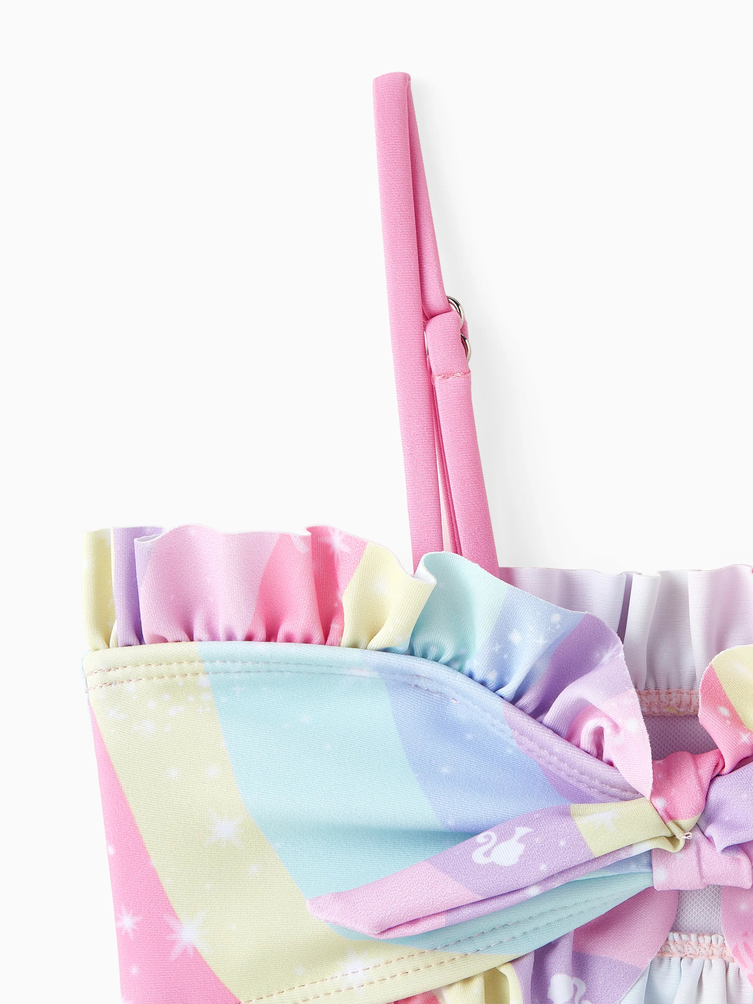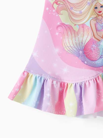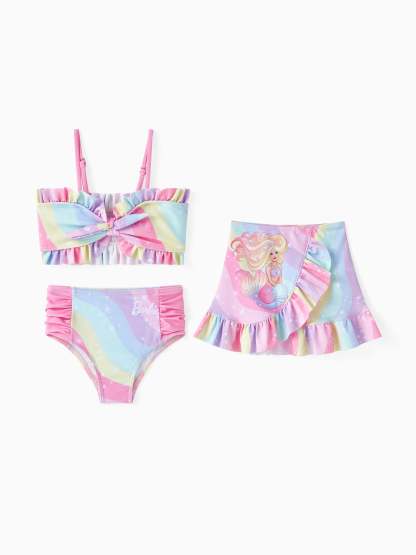 Barbie Toddler/Kid Girl 3pcs Magical Rainbow Mermaid Print Swimsuit Set Multi-color