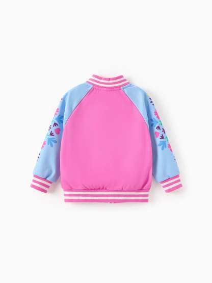 Dora Toddler Girl Knitted Fabric Colorblock Bomber Jacket Hot Pink