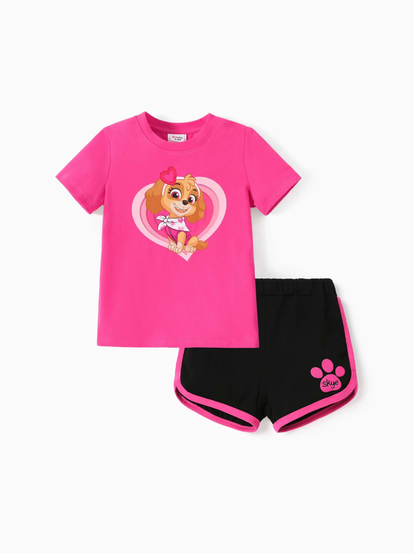 PAW Patrol Toddler Girl 2pcs Skye Heart Print Cotton Tee and Elasticized Shorts Set Roseo