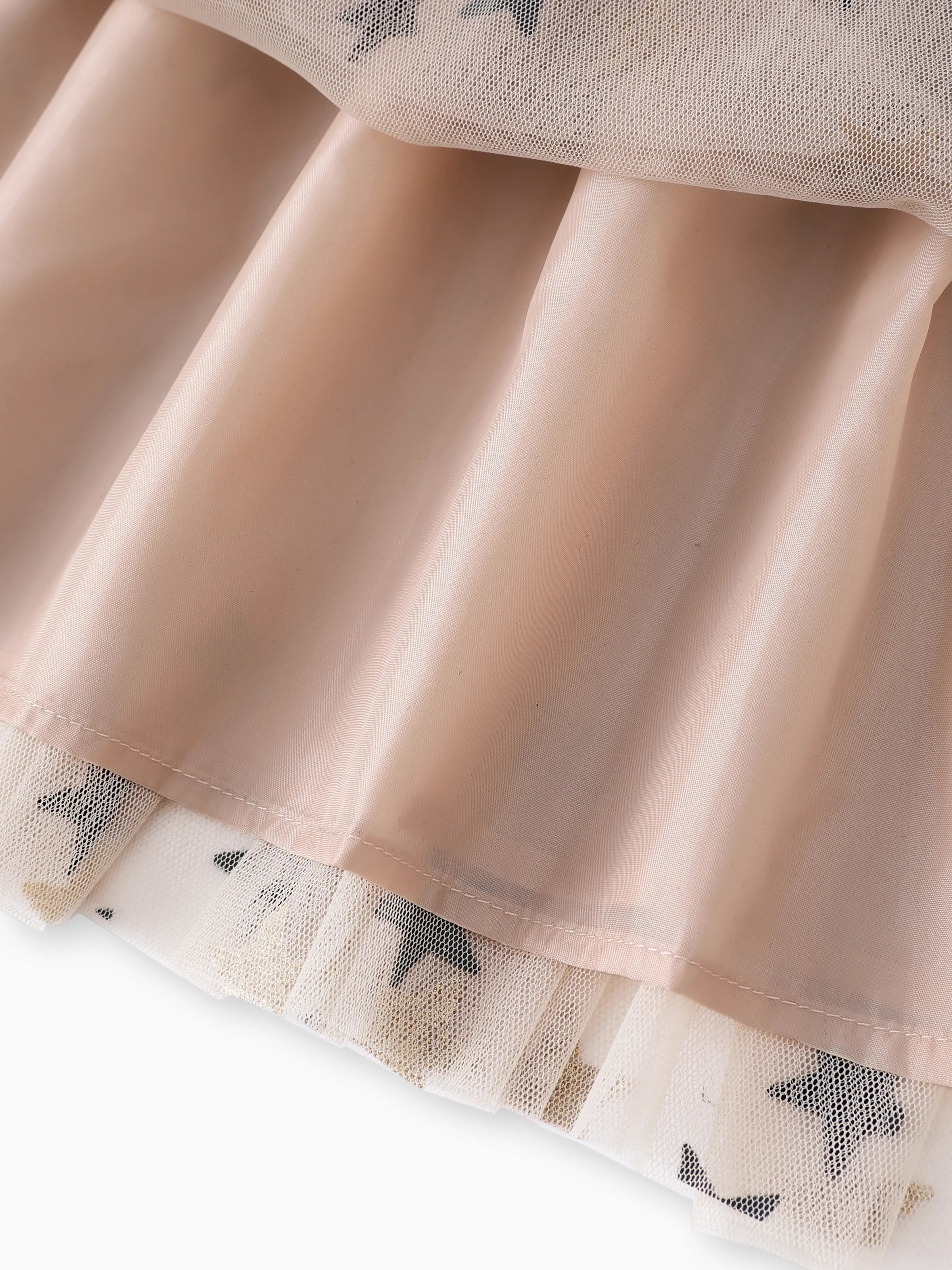 Sparkle in style with this sweet toddler girl stars glitter design mesh splice belted long-sleeve dress, perfect for fall and spring.