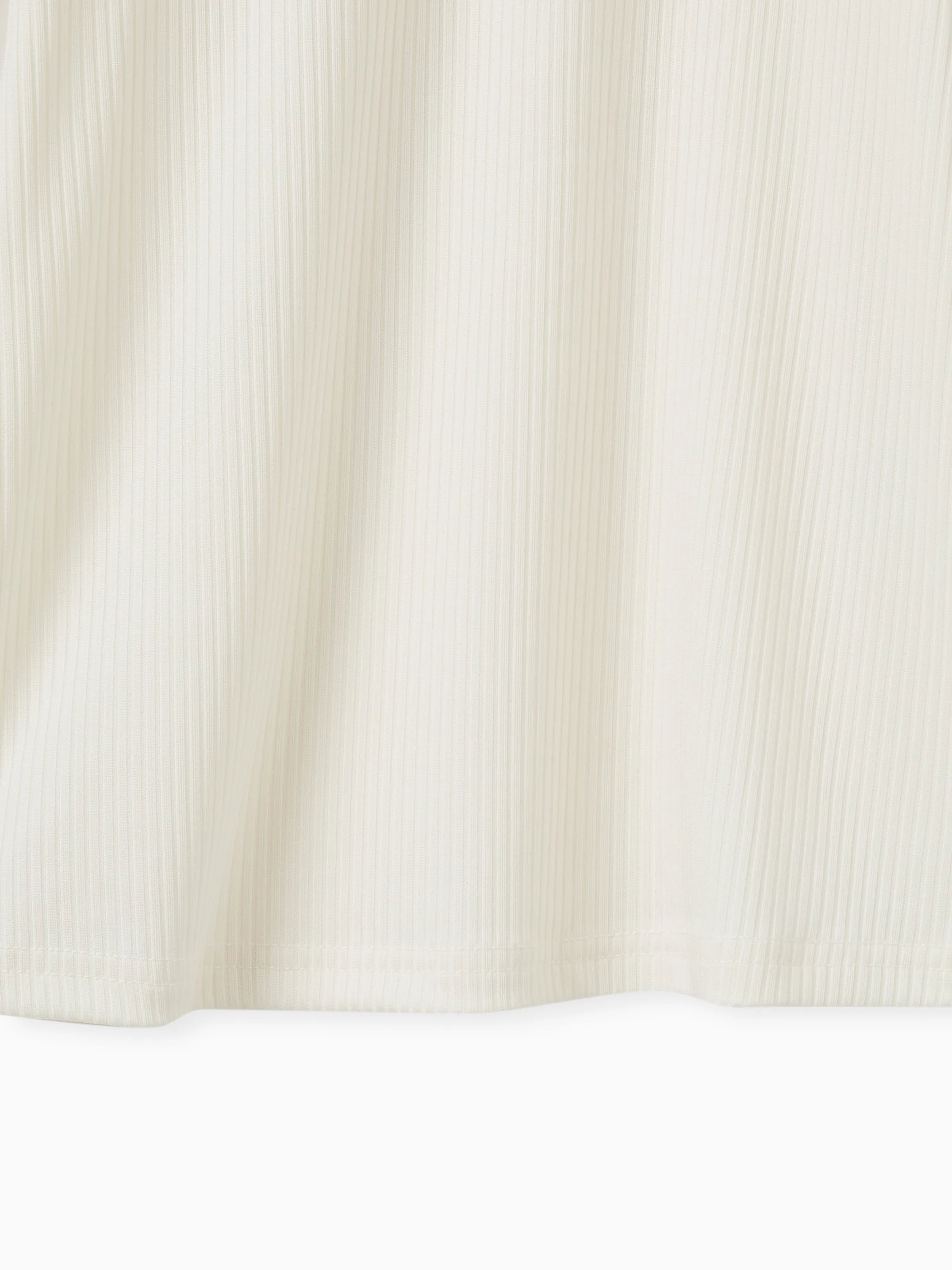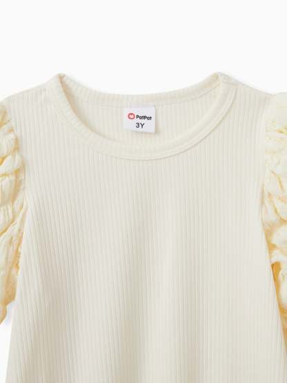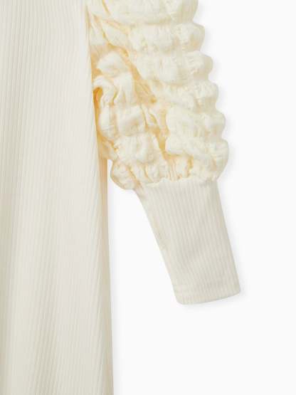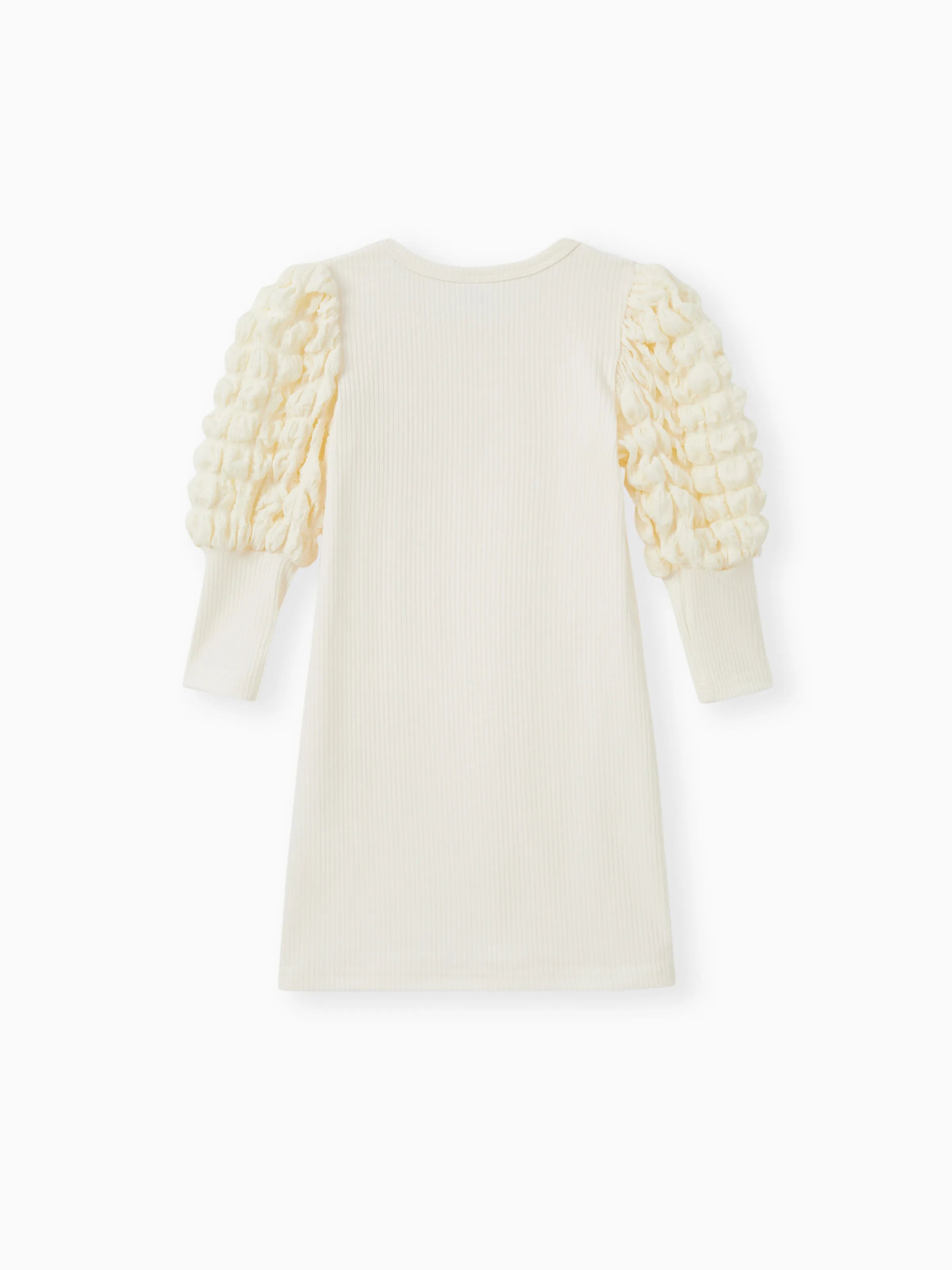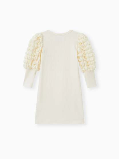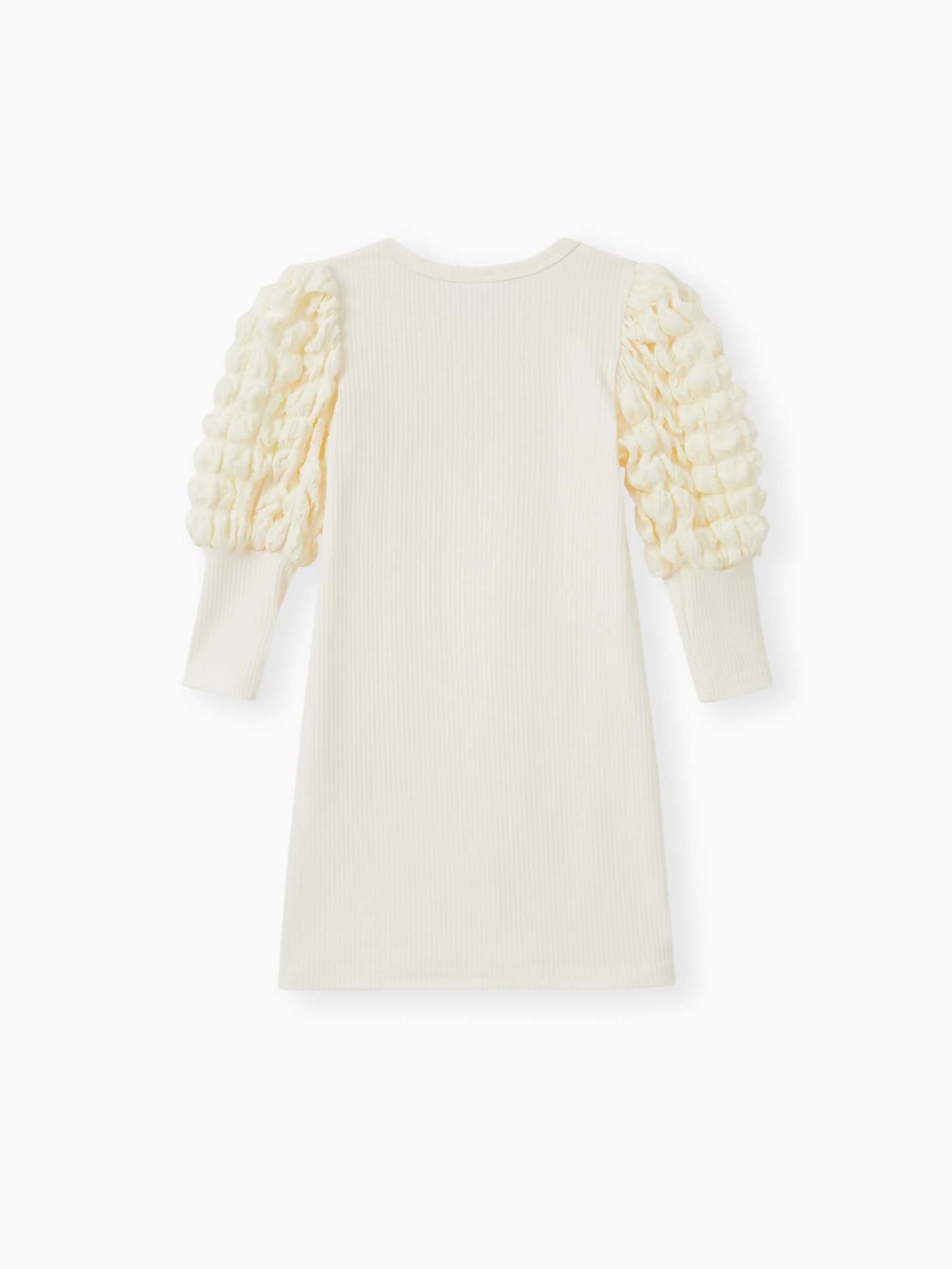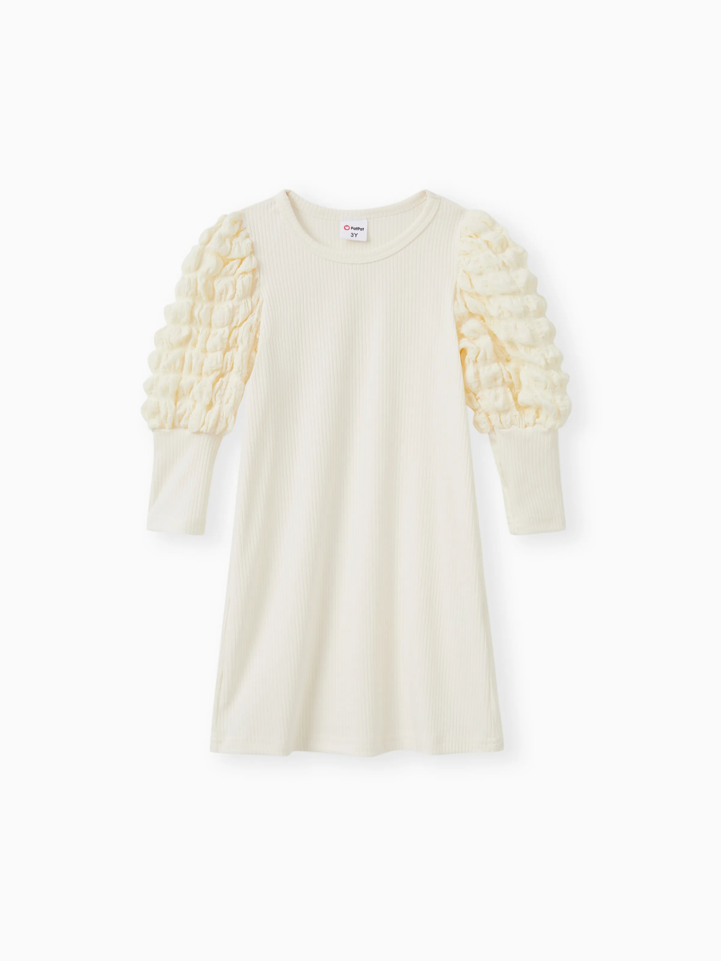 Sweet Toddler Girl Long Puff-sleeve Dress with Ribbed Texture.