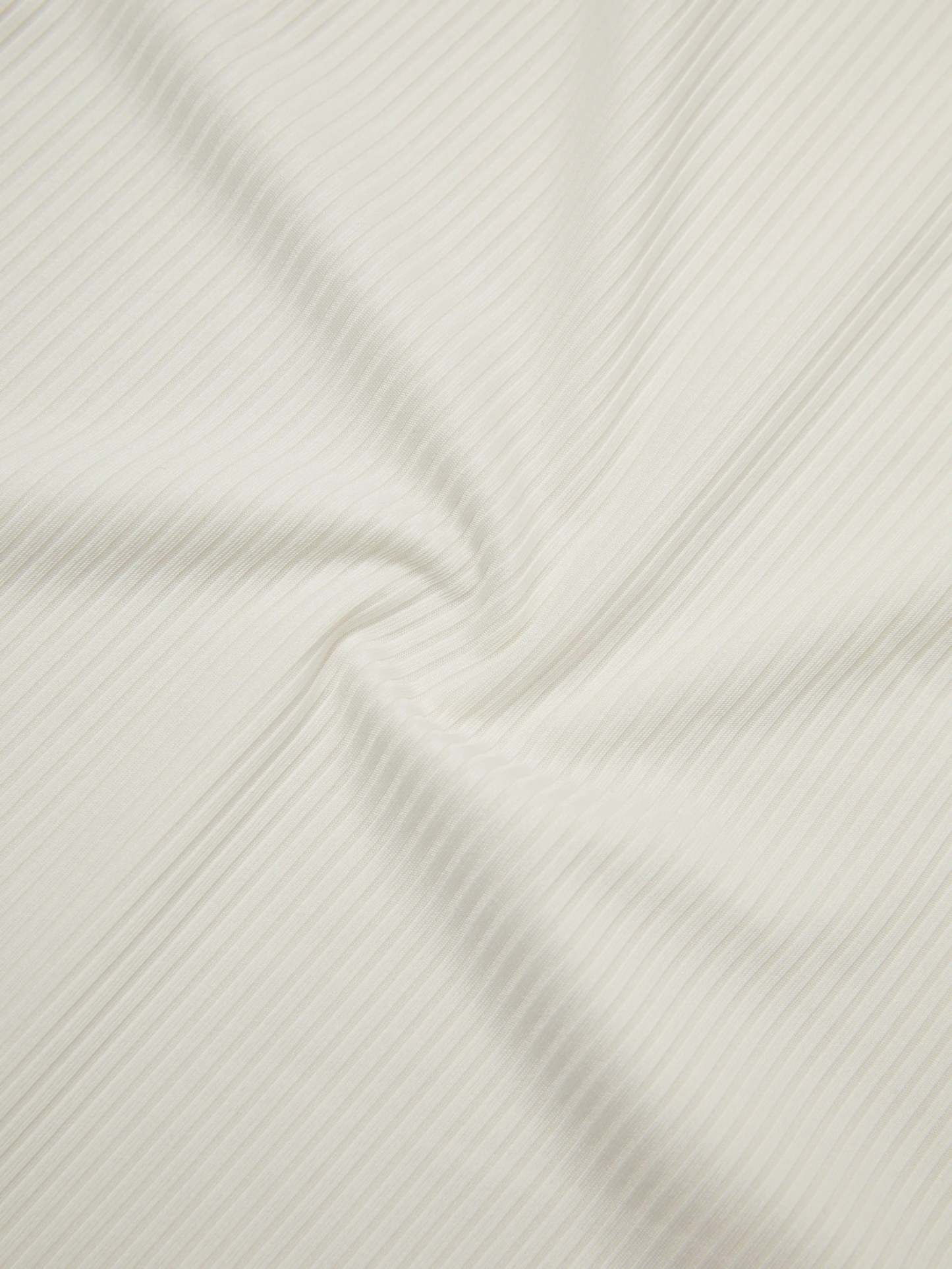 Soft and comfy 95% polyester and 5% spandex main fabric and 90% polyester, 10% spandex sleeves.